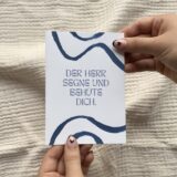 Unser 3-teiliges Kartenset “Segen” ist in kräftigen Farben und mit moderner Schrift gestaltet.