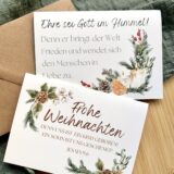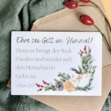 Unser Weihnachtskartenset besteht aus drei schönen Faltkarten im wunderschönen Aquarelldesign und moderner Schrift. Wenn du auf der Suche nach Karten mit weihnachtlichen Bibelversen bist, bist du hier genau richtig! Zum Set gehören drei braune, schlichte Couverts, die farblich gut zu den festlichen Karten passen.