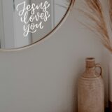 Vinyl-Sticker „Jesus loves you“. Geeignet für Spiegel, Fenster, Computer und viele weitere glatte Oberflächen. Christlicher Aufkleber in Grösse 9x8cm.